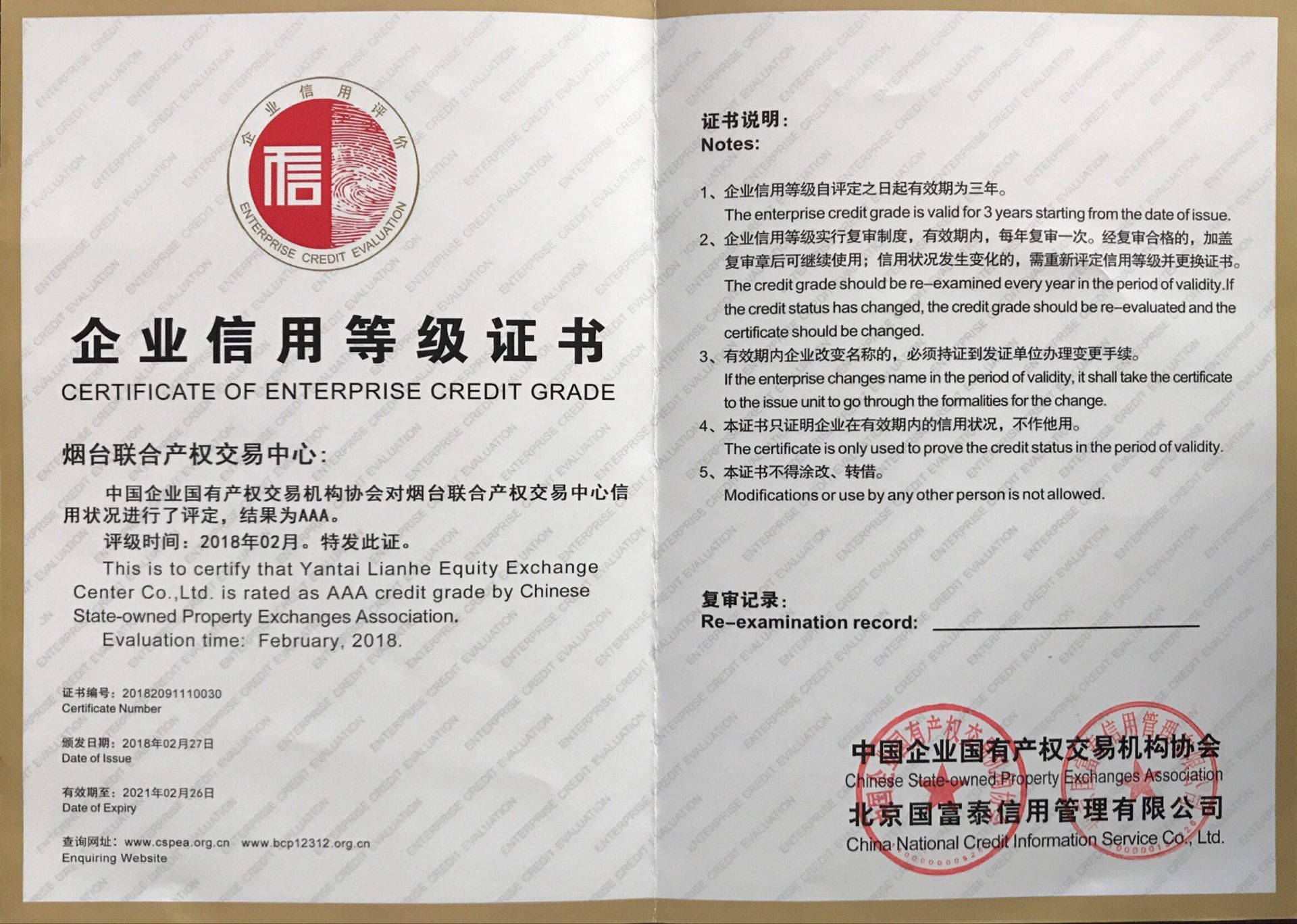 近日,在中國產(chǎn)權(quán)交易協(xié)會(huì)組織開展的全國產(chǎn)權(quán)交易行業(yè)信用等級(jí)評(píng)價(jià)活動(dòng)中,煙臺(tái)聯(lián)合產(chǎn)權(quán)交易中心(以下簡稱“聯(lián)合產(chǎn)權(quán)”)榮獲信用最高等級(jí)AAA級(jí)信用企業(yè)稱號(hào)。