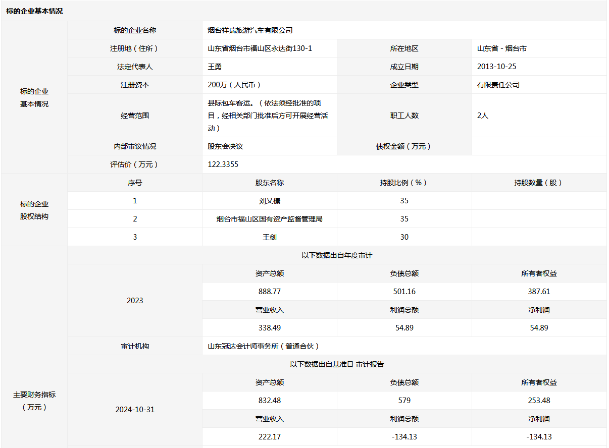 煙臺祥瑞汽車租賃有限公司35%國有股權(quán)