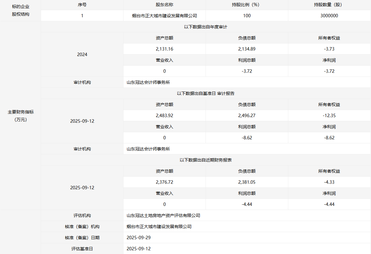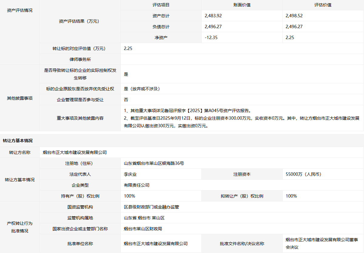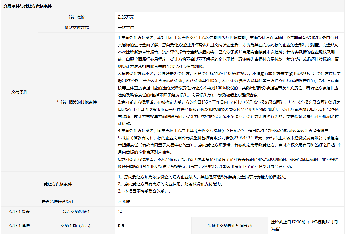 轉(zhuǎn)讓方:煙臺市正大城市建設發(fā)展有限公司