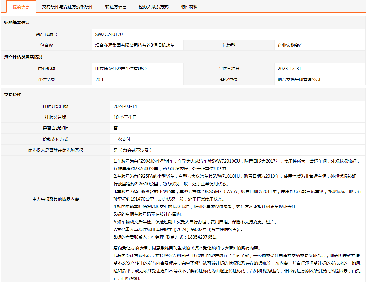 煙臺監(jiān)獄報廢資產(chǎn)一宗交易公告
