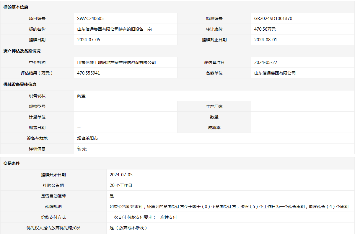 掛牌起止日期:2024年07月05日至2024年08月01日