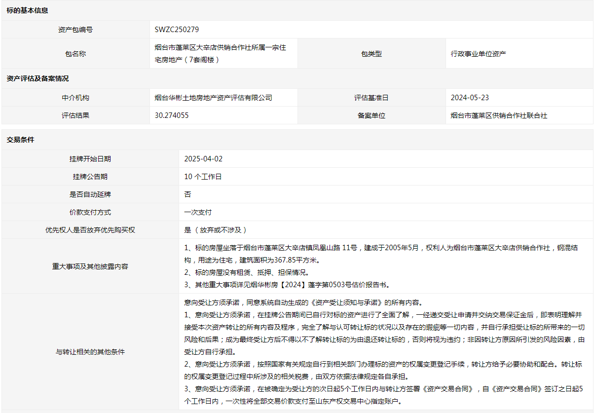煙臺市蓬萊區(qū)大辛店供銷合作社所屬一宗住宅房地產(7套閣樓)