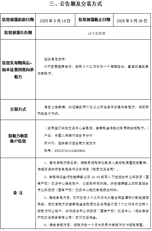 掛牌起止日期:2025年9月16日至2025年9月29日